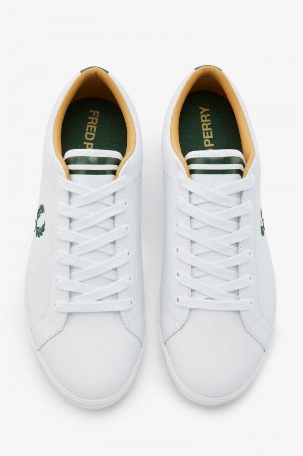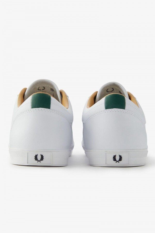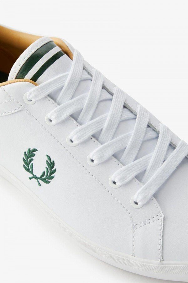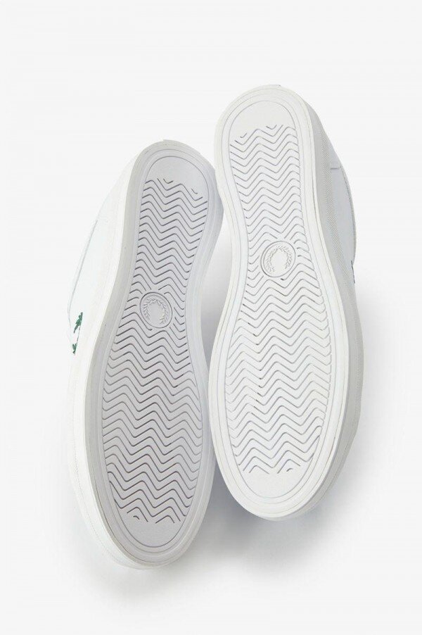 Pürüzsüz, kaplamalı yüzey ve kontrast renkli astarlı ince deri plimsoll. Çift uçlu dil ve kontrast renkli topuk şeridi ile süslenmiş, beyaz kauçuk tabanlı.