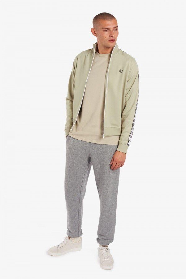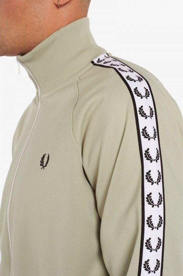 Mirasımızın önemli bir parçası olan eşofman üstümüz, tanınabilir bir Fred Perry ikonu ve en kalıcı parçalarımızdan biri. Cesur renklerin ve suni elyafların ilk kez takım formalarına girdiği bir dönemden ilham alan eşofman üstümüz, daha sonra Britanya alt kültürüne adapte oldu ve Britpop döneminde ilgi odağı oldu. O zamandan beri de cazibesini hiç kaybetmedi. Orijinalinin neredeyse bir kopyası olan bantlı eşofman üstümüz, imza tasarım detaylarıyla aynı pamuk/polyester triko kumaştan üretildi. Beyaz spiral fermuar ve Laurel Wreath bant, markalaşmanın tüm renklere özgü olması gereken 70’lerin nakit sıkıntısı dönemlerinin bir işaretiydi. Bu, giderek sevdiğimiz bir özellik. Baştan sona Fred Perry.