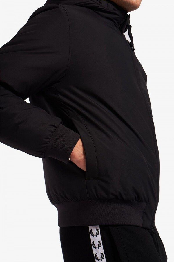 Kapüşon, cepler ve etek ucu ile manşetlerde imzamız olan çift taraflı uçlarla tasarlanmış, dolgulu naylon-twill spor ceketler.