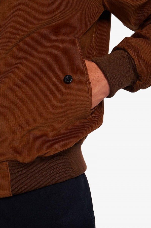 Harrington ceketimiz, İngiltere’de üretilmiş ve 14 katlı pamuklu kadife kumaştan üretilmiştir. Kapaklı cepler, metal fermuarlı açıklık, ekose astar ve Laurel Wreath markalı düğmelerle tasarlanmıştır.