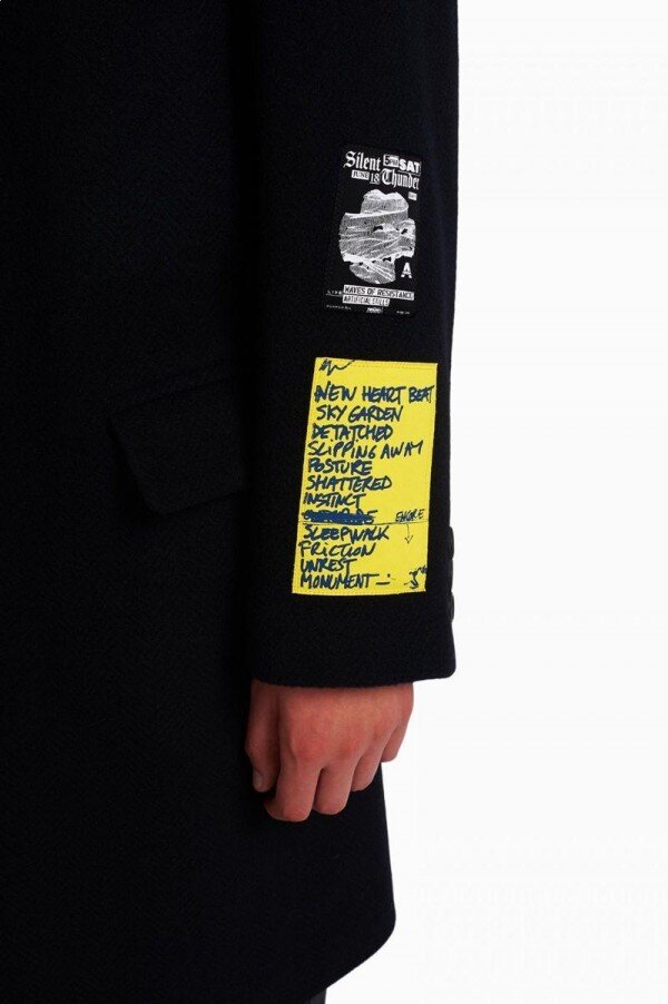 Raf Simons iş birliğiyle tasarlanan özel dikim yün paltomuz İngiltere’de üretilmiş ve vintage bir tasarıma göre modellenmiştir. Bu stil, klasik özellikleri kişiselleştirilmiş detaylar ve Raf Simons imzalı logoyla bir araya getiriyor.