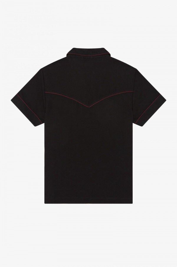 Ağır sepet örgüsü pamuk / Açık yaka ve 70’ler yakalı rahat kesim / Kontrast şerit / Eğimli yama cepler / Kavisli arka boyunduruk
