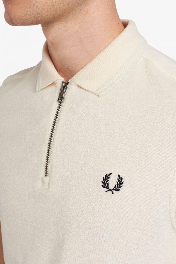 Lüks havlu kumaşından üretilen, fermuarlı ve imzamız olan Defne Çelengi işlemeli polo tişörtümüz.