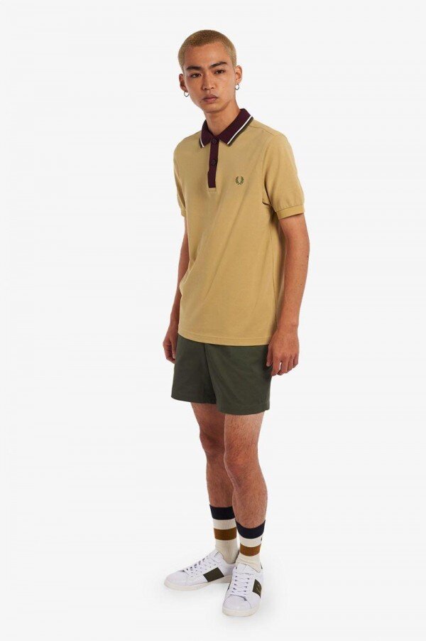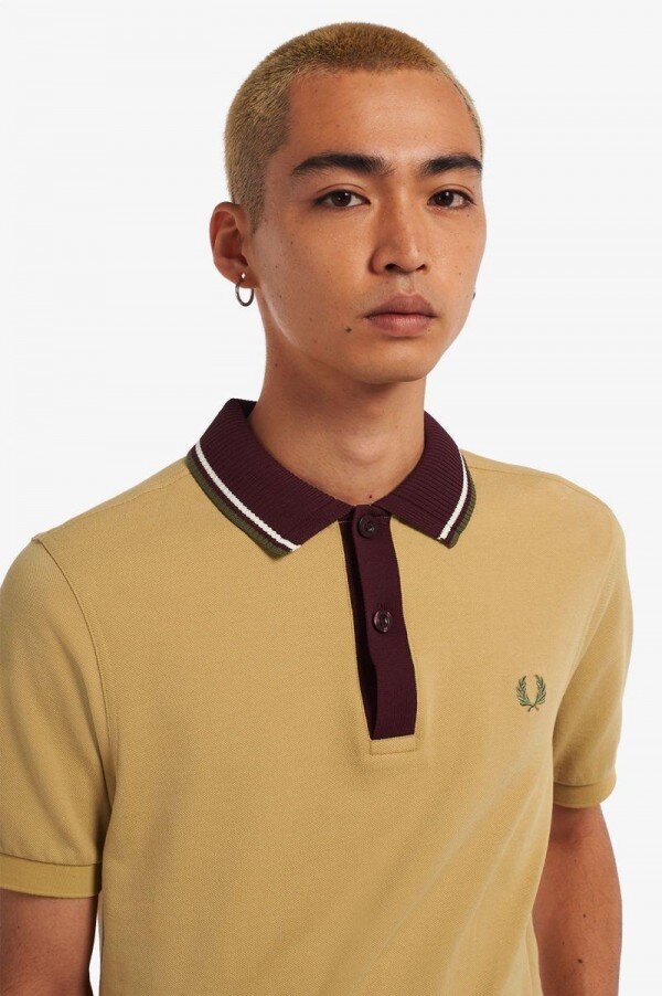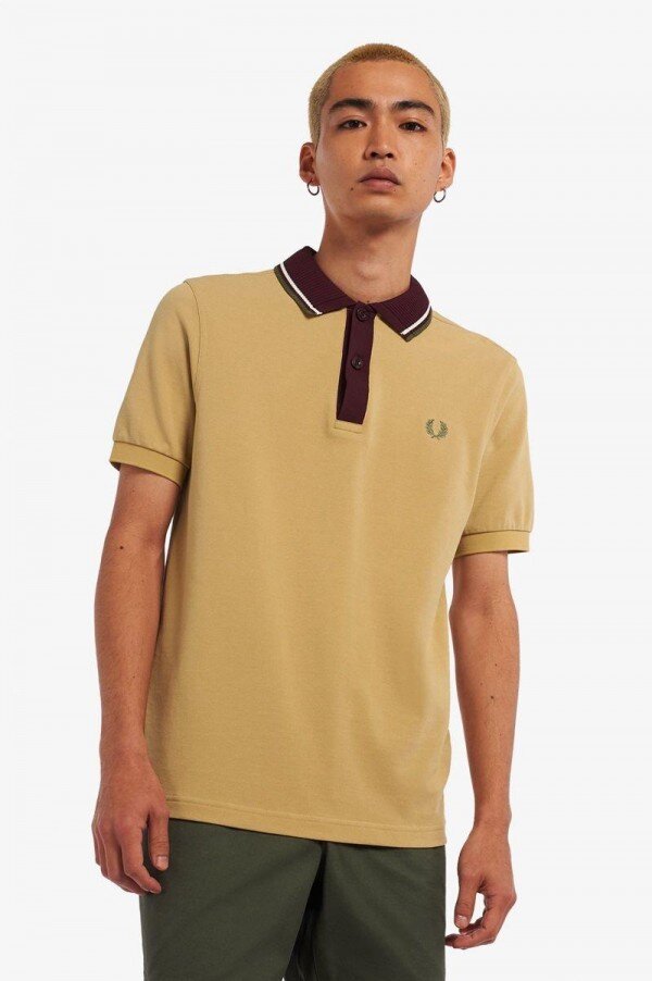 İmzalı pamuklu pike kumaşımızdan, kontrast örme yaka ve çıtçıtlı polo tişört.