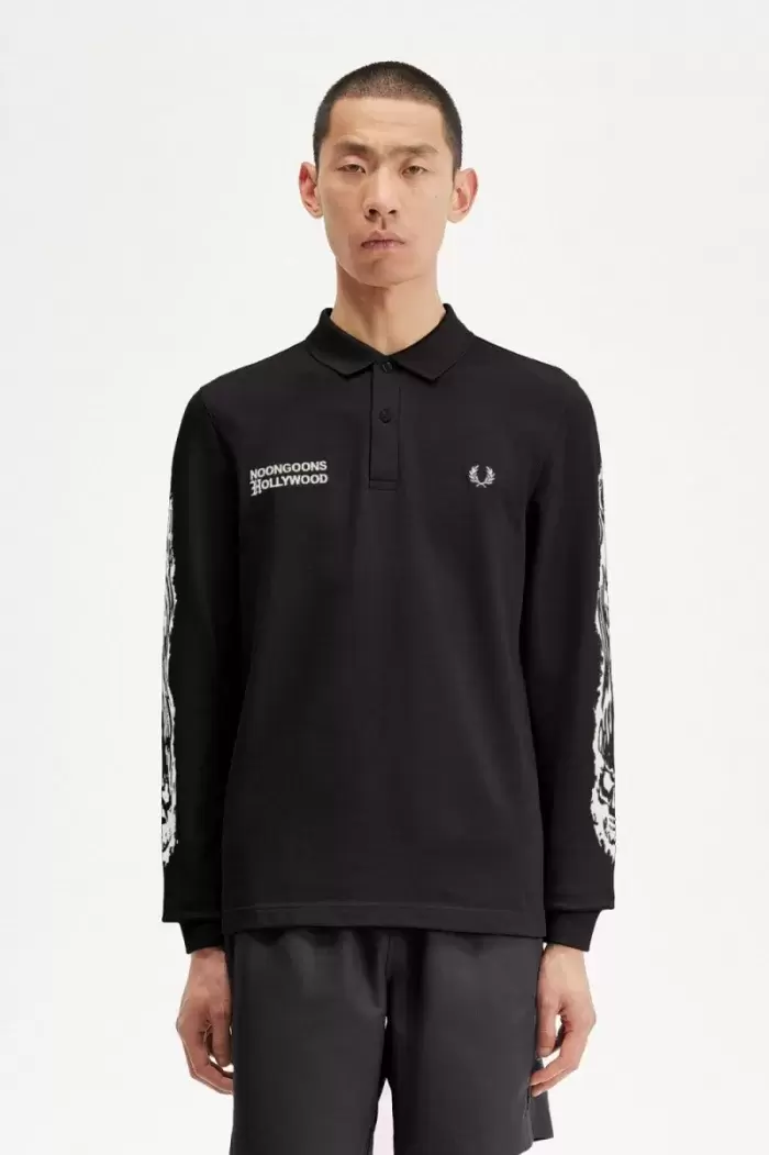 Noongoons Uzun Kollu Grafik Erkek Polo Tişörtü