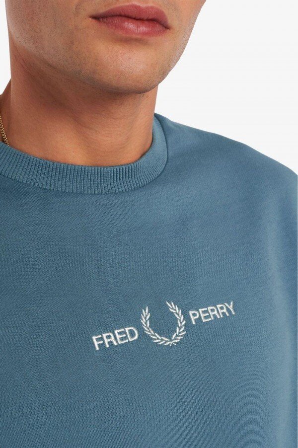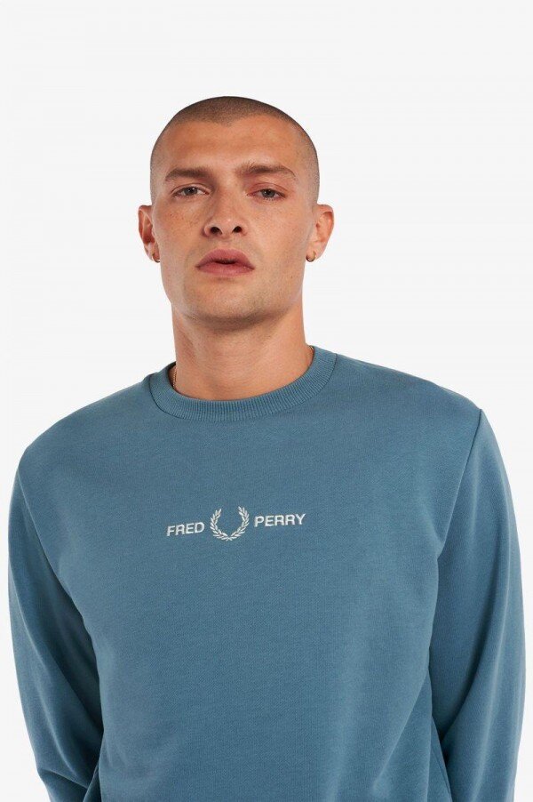 Göğüs kısmında grafik marka işlemeleri ve sırt kısmında baskılı grafik bulunan, ilmekli pamuklu sweatshirt.