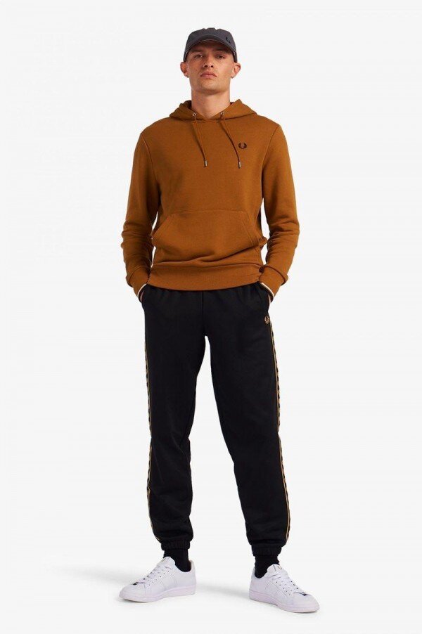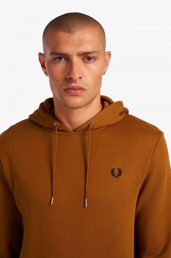 Efsaneye göre, çift taraflı dikişimiz, Lillywhites’tan bir alıcının Fred’in düz renk tenis tişörtüne futbol takımı renklerinin eklenmesini istemesiyle ortaya çıkmıştır. Sadece biz 5-4-4 oranında dikiş kullanıyoruz ve bu bizim DNA’mızın bir parçasıdır. İmzamız olan detaylarla tasarlanan kapüşonlu sweatshirt’ümüz, çift taraflı dikiş ve renk uyumlu Defne Çelengi işlemelerine sahiptir. Tam Fred Perry.
