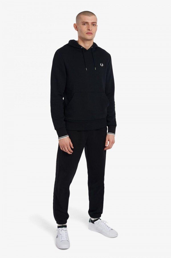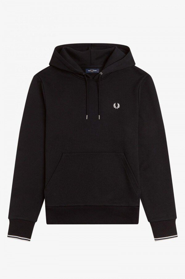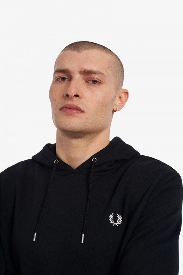 Efsaneye göre, çift taraflı dikişimiz, Lillywhites’tan bir alıcının Fred’in düz renk tenis tişörtüne futbol takımı renklerinin eklenmesini istemesiyle ortaya çıktı. Sadece biz 5-4-4 oranında dikiş kullanıyoruz ve bu bizim DNA’mızın bir parçası. İmzamız olan detaylarla tasarlanan kapüşonlu sweatshirt’ümüz, çift taraflı dikiş ve renk uyumlu Defne Çelengi işlemelerine sahiptir. Tam Fred Perry.