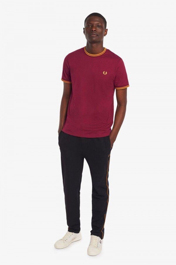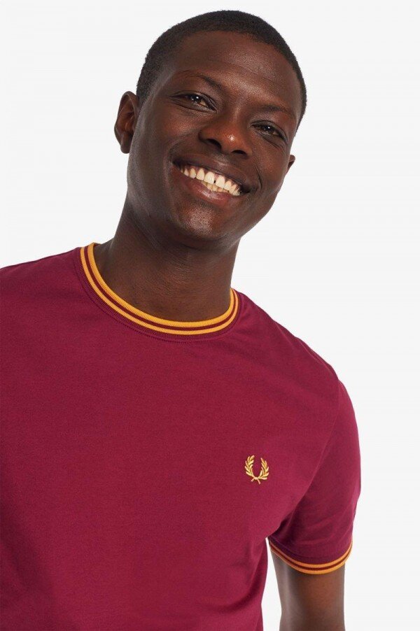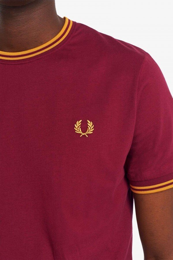 Hafif pamuklu jarse / Normal kesim / Çift taraflı uçlama tekniği, Lillywhites’tan bir alıcının Fred’in düz renk tenis tişörtüne futbol takımı renklerinin eklenmesini istemesiyle ortaya çıkmıştır. Sadece biz 5-4-4 oranında uçlama tekniği kullanıyoruz ve bu bizim DNA’mızın bir parçasıdır. İmzamız olan detaylarla tasarlanan yuvarlak yakalı tişörtümüz, çift taraflı uçlama tekniğine ve renk uyumlu Defne Çelengi işlemelerine sahiptir. Tam Fred Perry’ye göre.