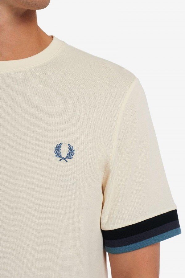 Kollarda uç ve yumuşak pamuklu pike yapısıyla Çizgili Manşet Pike Tişörtümüz, klasik yuvarlak yakalı tişörtü, Fred Perry’nin imzalı detayları ve seçkin malzemeleriyle bir üst seviyeye taşıyor. Baştan aşağı Fred Perry.
