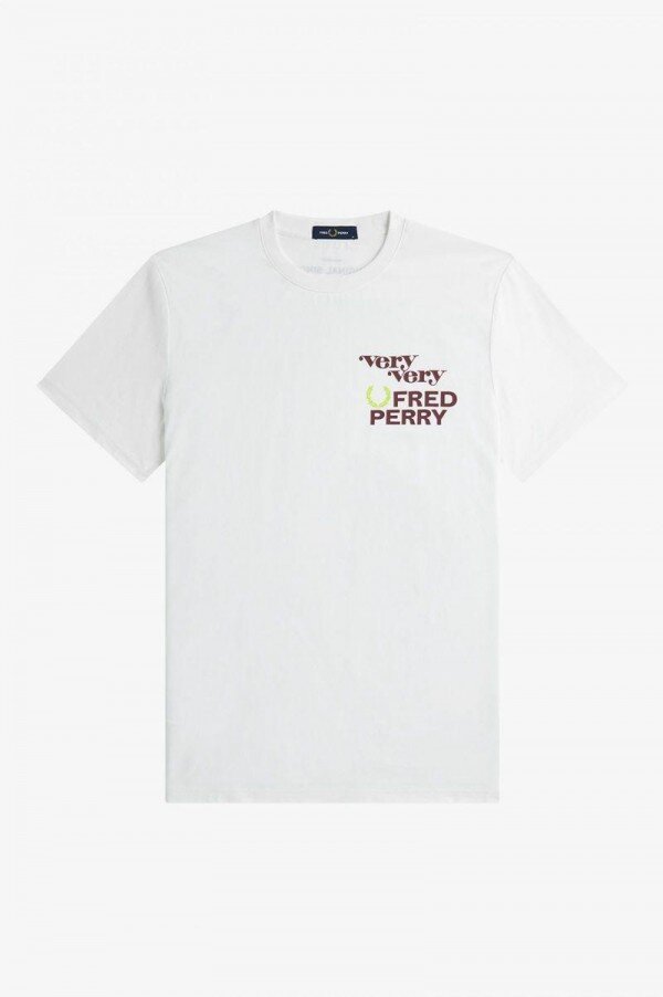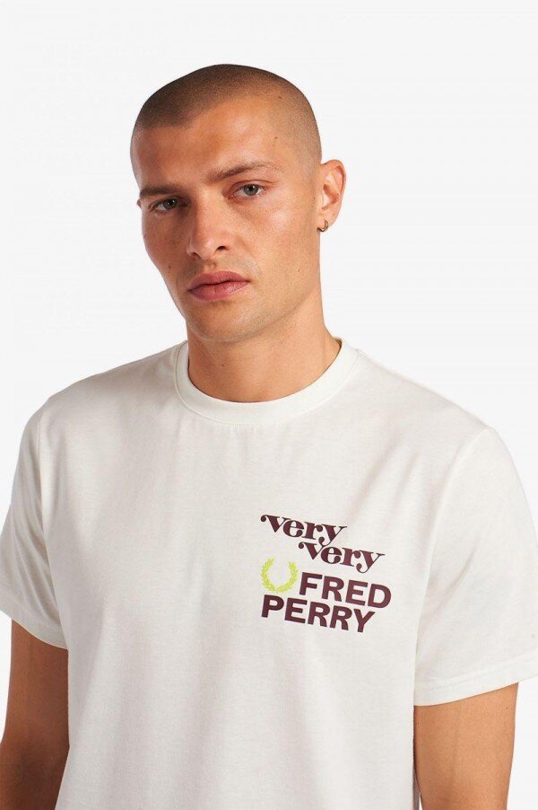 Pamuklu jarse kumaştan, göğüs kısmında orijinal Fred Perry deseni ve arkada grafik marka baskısı bulunan yuvarlak yakalı tişört.
