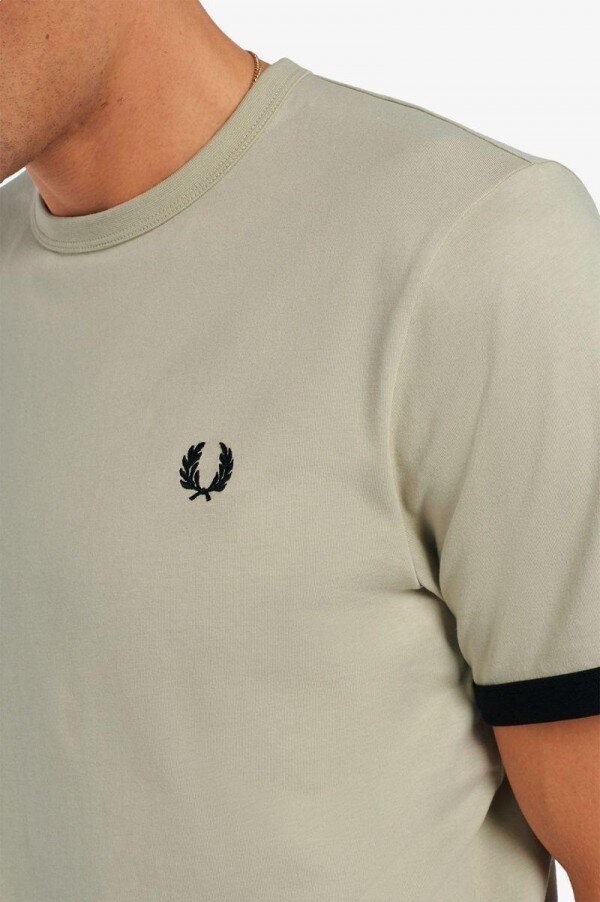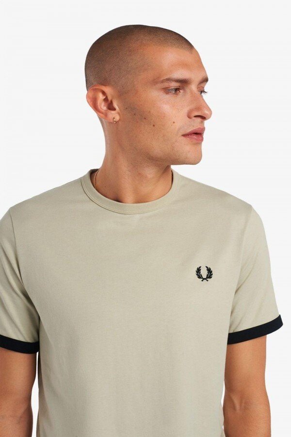 Başlangıçta spor antrenman kıyafeti olarak giyilen ringer tişörtü, daha sonra altkültürel üniformalara uyarlandı. 70’lerden itibaren cesur, zıt renkler ve grafik baskılarla üretildi. Bizimki, tanıdık Fred Perry tonlarını benimsiyor.