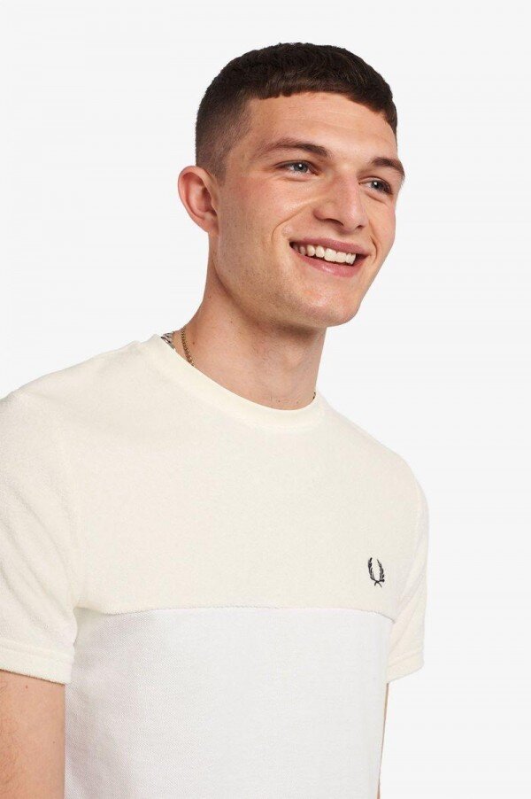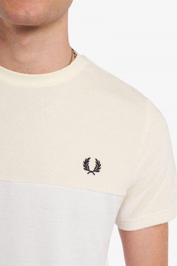 Klasik bir modele ince bir dokunuş katarak yuvarlak yakalı tişörtümüzü yumuşak havlu üst panel ve kollarla uyarladık. On yıllardır tercih ettiğimiz bir kumaş olan dokulu havlu, gardırobunuzun vazgeçilmezi olan bu ürüne bir kat daha sofistikelik katıyor. Baştan aşağı Fred Perry.
