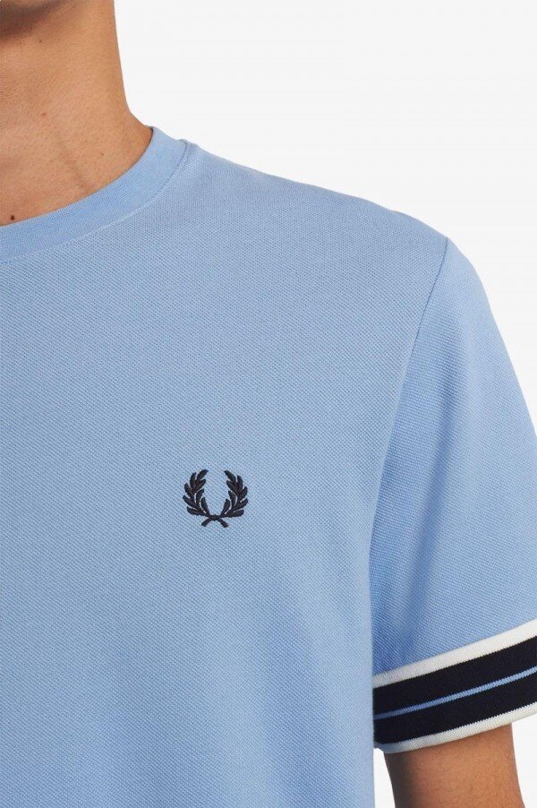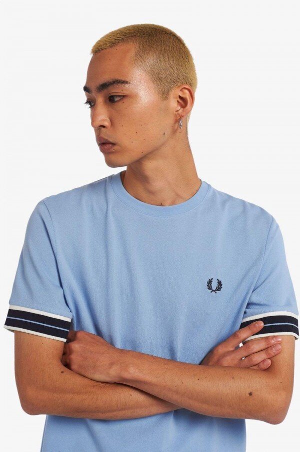 Efsaneye göre, çift uç motifimiz, Lillywhites’tan bir alıcının Fred’in düz renkli tenis tişörtüne futbol takımı renklerinin eklenmesini istemesiyle ortaya çıktı. Uçlu pike tişörtümüz için, imzamız olan 5-4-4 uç motifini daha büyük bir tramvay hattı motifine uyarladık. Hafif bir dış kumaştan üretilen tişörtte, tam da beklediğiniz yerde işlenmiş Defne Çelengi motifimiz yer alıyor. Baştan aşağı Fred Perry.