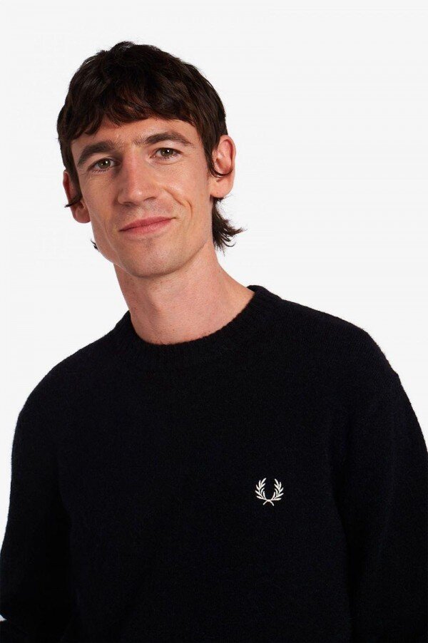 Punk idollerinin kabarık, çözülebilen ipliklerden yapılmış cesur kazaklar giydiği karşı kültürün tiftik kazaklarından ilham alan bu uyarlama, rahat kesim ve kademeli manşet özelliğine sahiptir. Zarif bir görünüm için etik kaynaklı yün karışımından örülmüş.