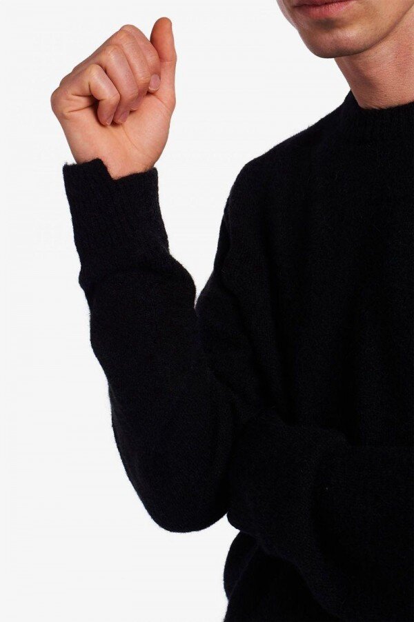 Etik kaynaklı alpaka yünü ve naylon karışımından örülmüş dokulu bisiklet yaka kazak. Rahat kesim ve kademeli manşet detayıyla tasarlanmıştır.