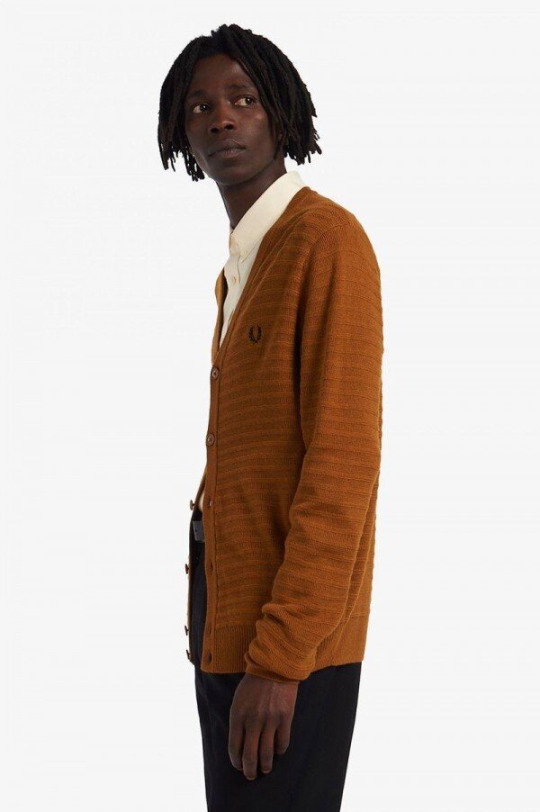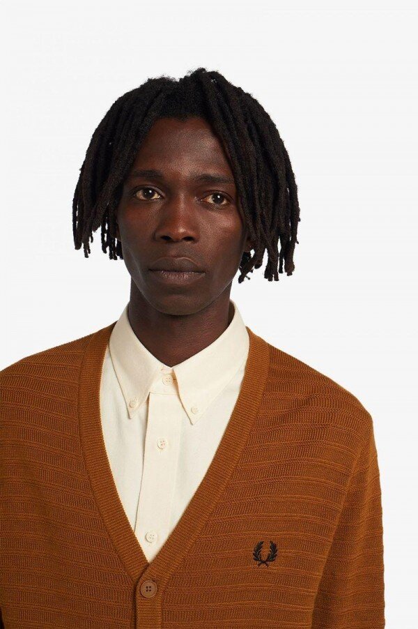 Karşı kültür Britanya’nın keskin stilinden ilham alan örme hırkamız, çağdaş modernistlerden ilham alıyor. V yaka, pike tenis tişörtümüzün yakası ve düğmeli çıtası için mükemmel bir çerçeve sunuyor.