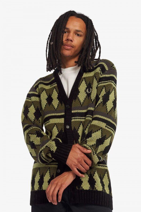 Pamuk ve yün karışımından üretilen, kendine özgü elmas ve uç desenine sahip, kalın ve rahat kesimli bir hırka.