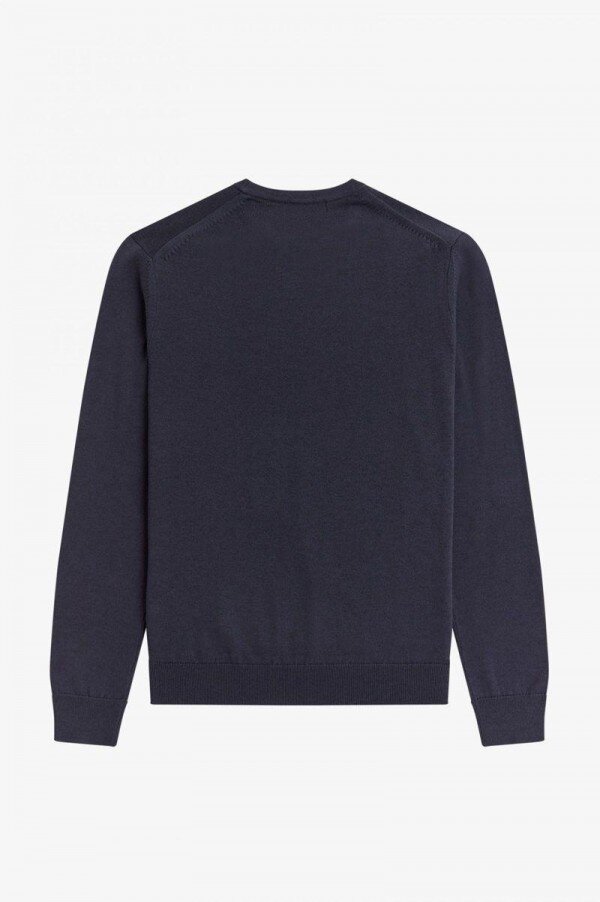 İnce Fred Perry detaylarına sahip şık bir temel parça. Orijinal ısınma kazağımızdan ilham alan bu model, klasik tenis V yakasını ribanalı yuvarlak yakayla değiştiriyor. Pamuk ve etik kaynaklı merino yünü karışımından örülmüş.