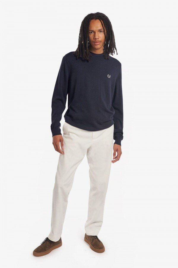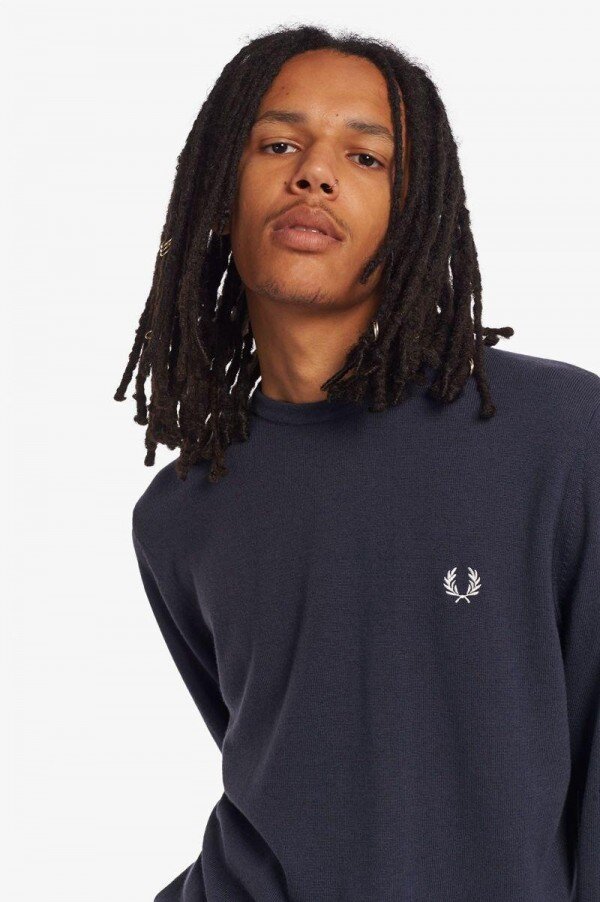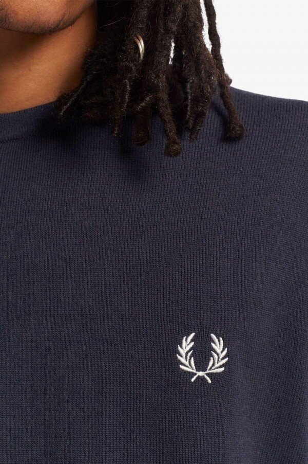 Merino yünü ve pamuk karışımından üretilmiş klasik yuvarlak yakalı kazağımız. Yaka kısmında çift taraflı dikiş bulunan Fred Perry’nin imza renklerinde tasarlanmıştır.