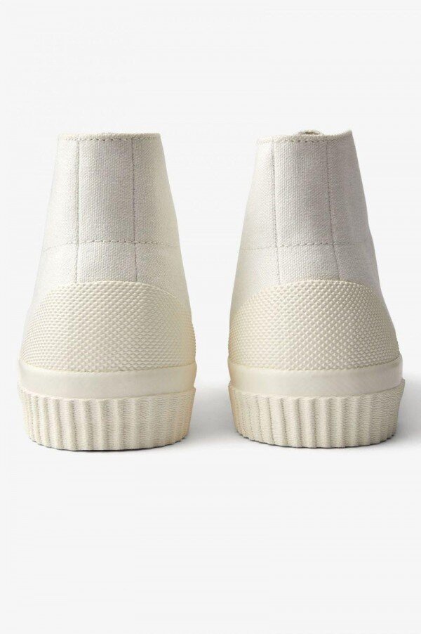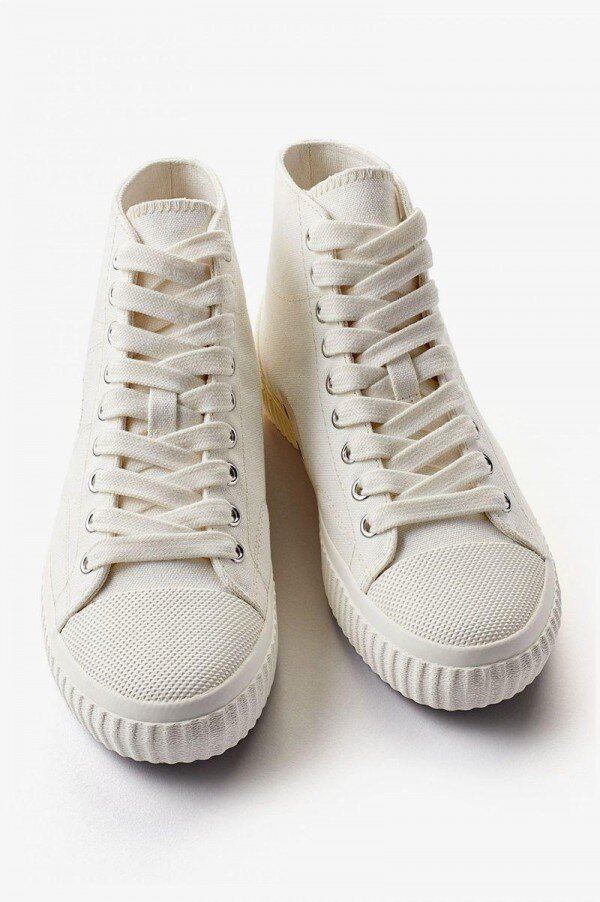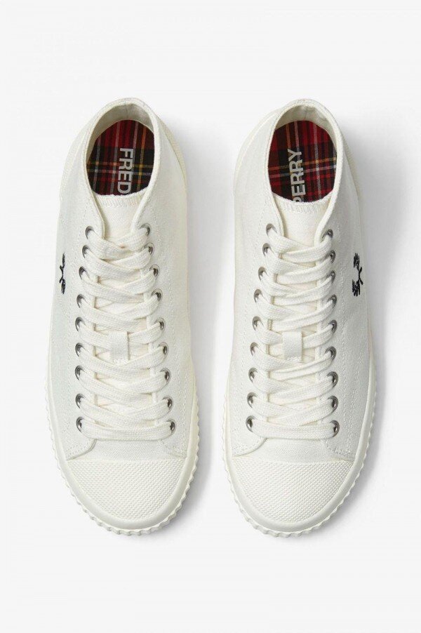 Klasik plimsoll’umuza daha sert bir yaklaşım getiren Hughes, spor giyimi altkültürel üniformalarla birleştiriyor. Kalın nervürlü kauçuk taban ve dokulu topuk ve burun güçlendirmeleriyle tasarlanan özellikler, iş ve günlük giyimden ödünç alınmıştır. Kırmızı Stewart Tartan astarı, otantik bir İskoç stiline sahiptir: İngiliz altkültürüne ve punk’ın tartanına bir selam niteliğindedir.