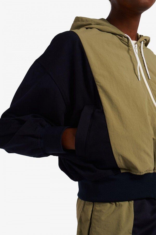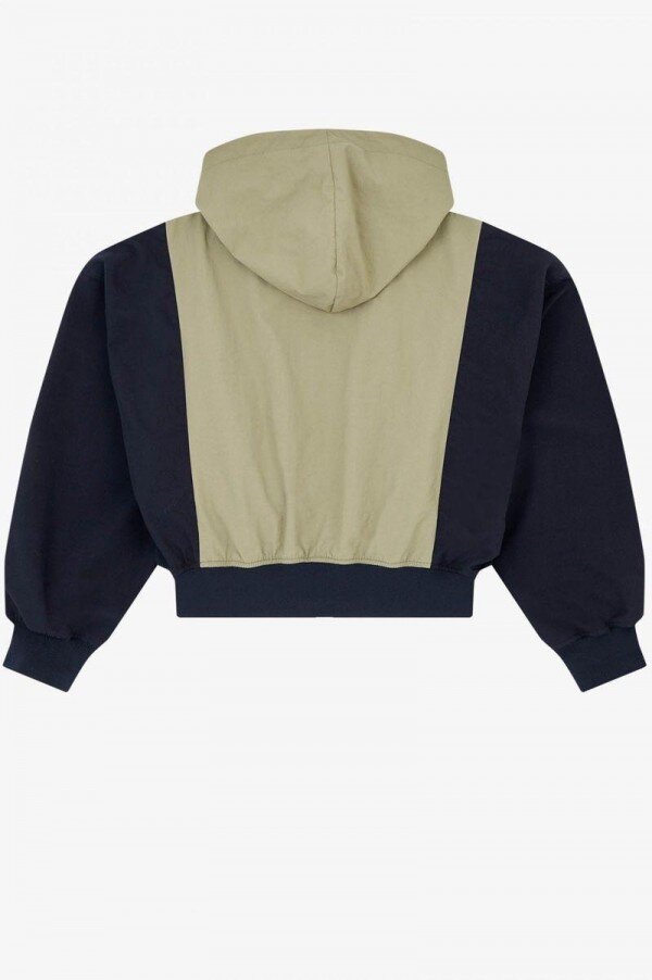 Rahat kesim / Spor tarzı naylon / Akrilik büzgülü kapüşon / Bobin fermuarlı açılış / Poliamid taftadan yapılmış ön ve arka orta paneller