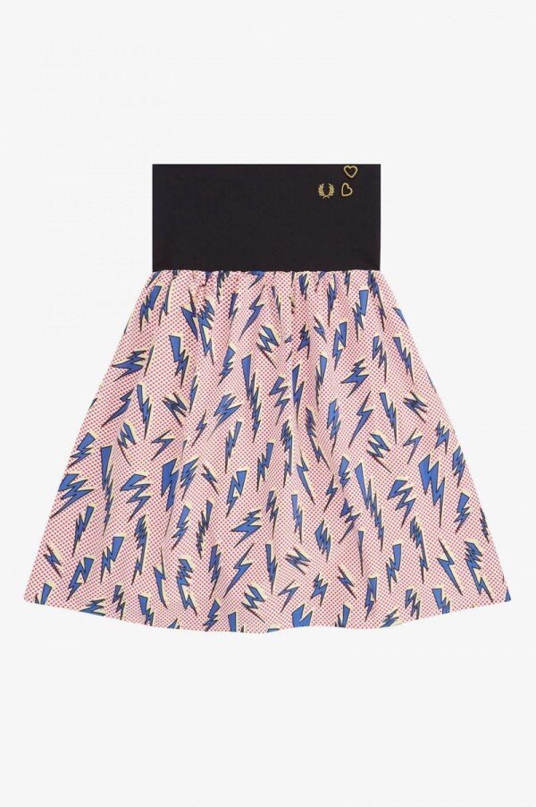 Amy’nin bizim için tasarladığı orijinal tasarımlara atıfta bulunan ve şarkıcının kendine özgü pin-up stilinden ilham alan Lightning Print Elbisemiz, Amy’nin sık sık taktığı bir çift şimşek küpeden ilham alıyor ve koleksiyonun imzası olan kalp işlemelerini içeriyor.