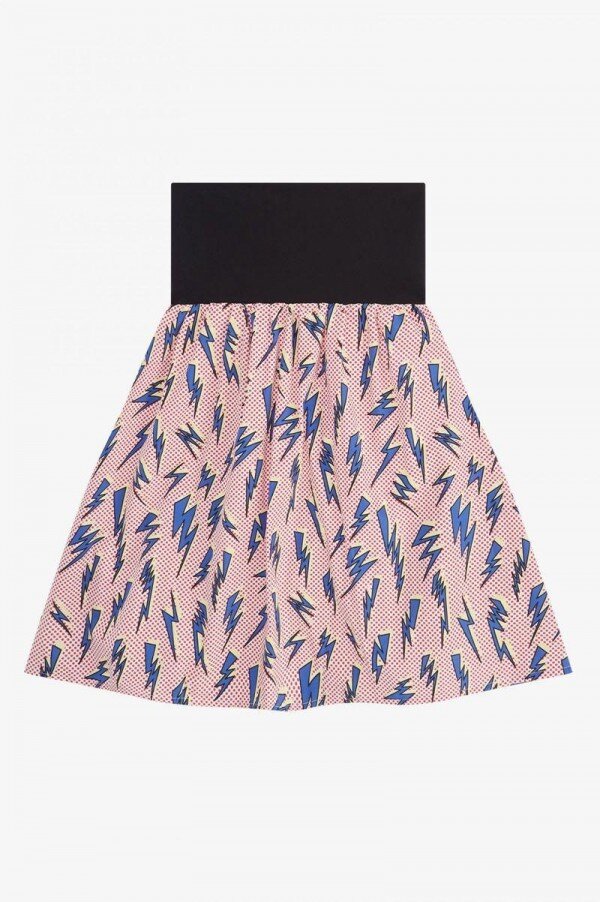 Pamuklu / A kesim etekli dar üst / Lightning print tasarımı / Astarlı / Amy, Defne Çelengi’nin üzerine kalp yamaları işledi
