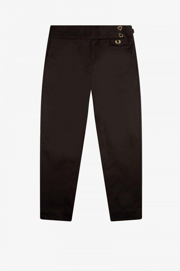 Elastanlı pamuk / Dar paça, yüksek bel tasarımı / Bel bandı ayarlayıcıları / Arkada welt cep / Bel bandında Amy işlemeli kalp yamaları