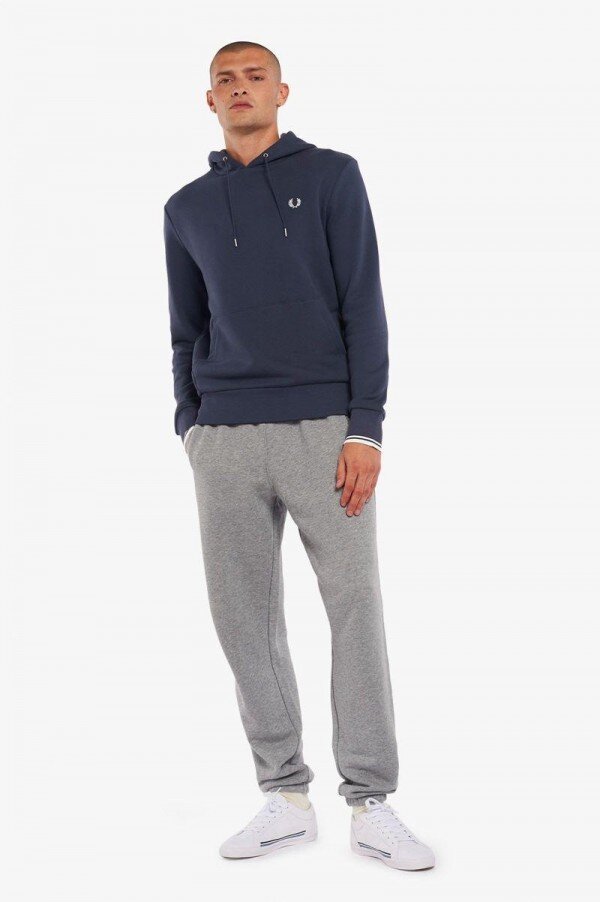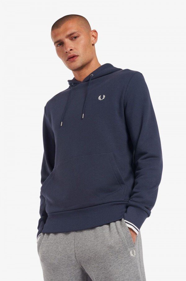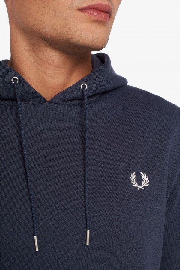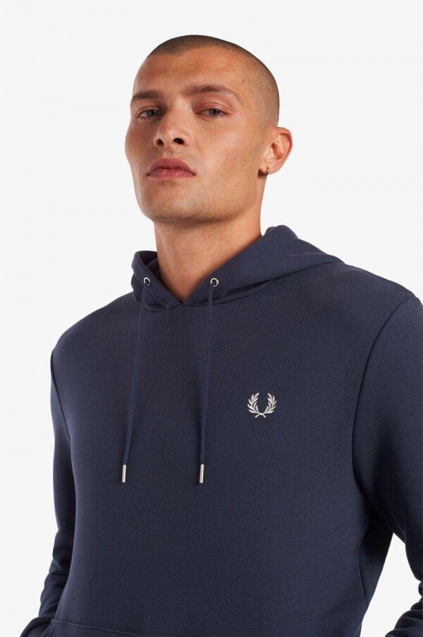 Efsaneye göre, çift taraflı dikişimiz, Lillywhites’tan bir alıcının Fred’in düz renk tenis tişörtüne futbol takımı renklerinin eklenmesini istemesiyle ortaya çıkmıştır. Sadece biz 5-4-4 oranında dikiş kullanıyoruz ve bu bizim DNA’mızın bir parçasıdır. İmzamız olan detaylarla tasarlanan kapüşonlu sweatshirt’ümüz, çift taraflı dikiş ve renk uyumlu Defne Çelengi işlemelerine sahiptir. Tam Fred Perry.