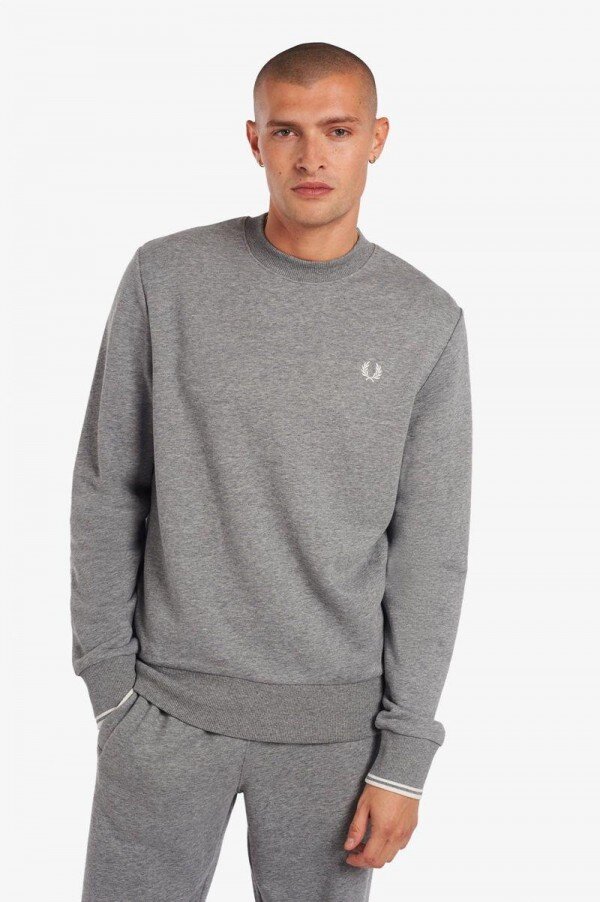 Sporcular tarafından kış antrenmanlarında tercih edilen bu pamuklu sweatshirt, spor giyim klasiğidir. Bizimki, manşetlerde çift uçlu, zarif Fred Perry tasarım detaylarına sahiptir.