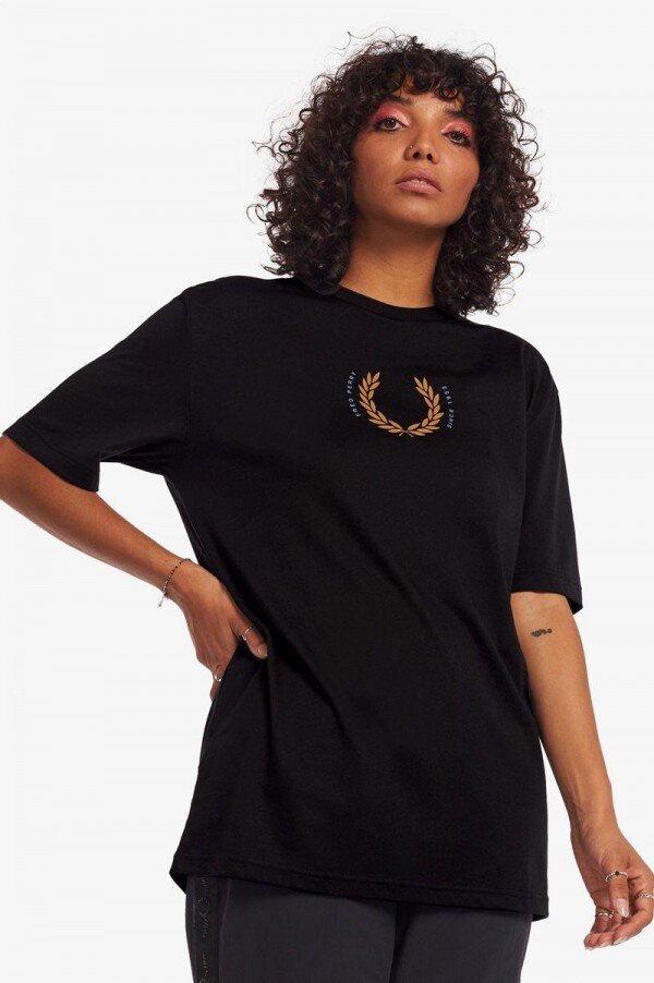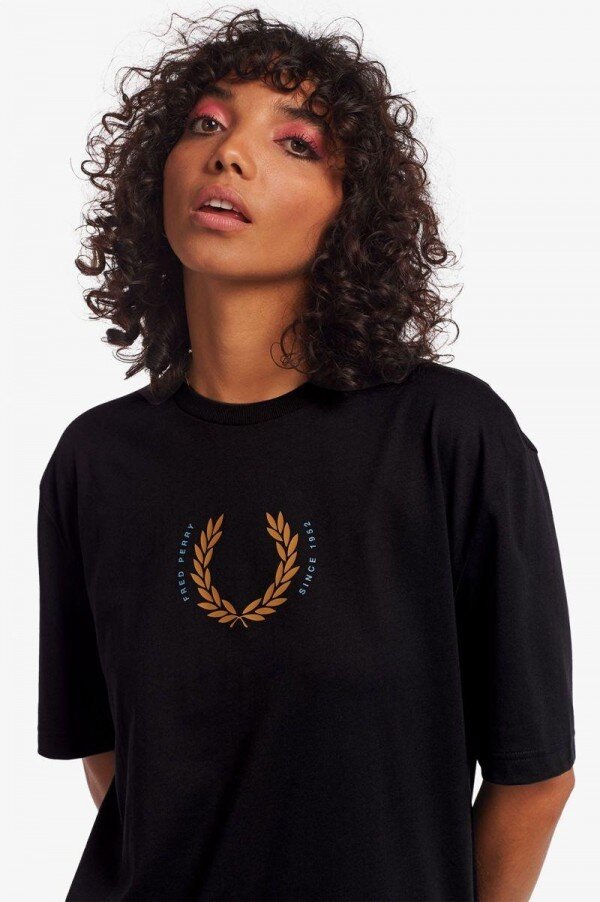 Pamuklu jarse / Rahat kesim / Kaburga yaka süslemesi / Grafik marka işlemeli