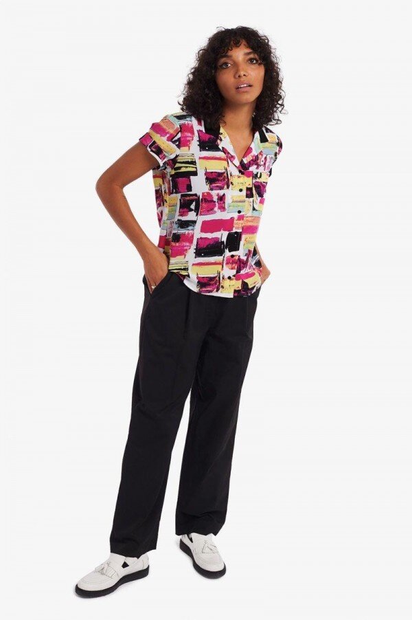 Hafif rayon / Kutu kesim / Tamamı dijital baskı / Kenar uçlu düz örgü yaka / Sırtta pile detayı