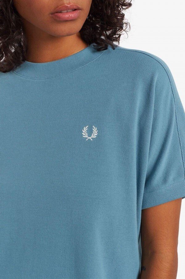 İmzalı pamuklu pike kumaşımızdan, kademeli etek ucuyla tasarlanmış, kutu gibi bir tişört.
